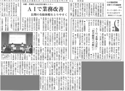 【新聞掲載】農経新聞に「人がいらないAIセミナー」の模様が掲載されました!